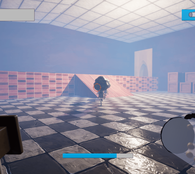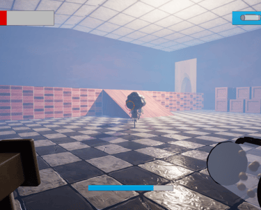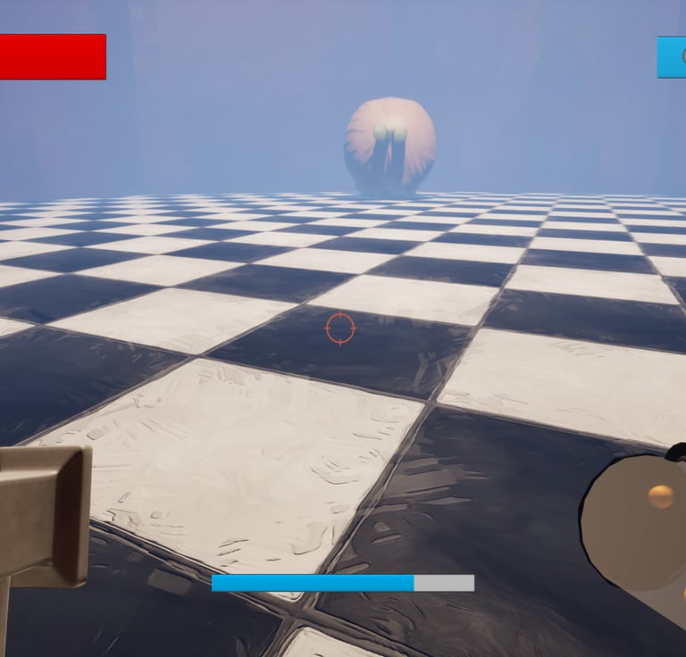 My main task on this project was the enemy AI. There were 2 basic enemy types, a basic melee enemy and a basic ranged enemy, as well as a miniboss that I worked on. The melee enemy is able to chase the player, attack the player, or lunge at the player (I did not do the lunge logic). The ranged enemy is able to get in attack range of the player, go to a player's last seen location, or do a special jumping attack. Finally, the miniboss is able to do a charged-up dash attack, a slam attack, or, at half-health, a special, series or rapid slam attacks. I also did some miscellaneous work such as the gun/melee bob, the melee animation, the spiral rotating inside the gun, and the fade to black sequence at the end.