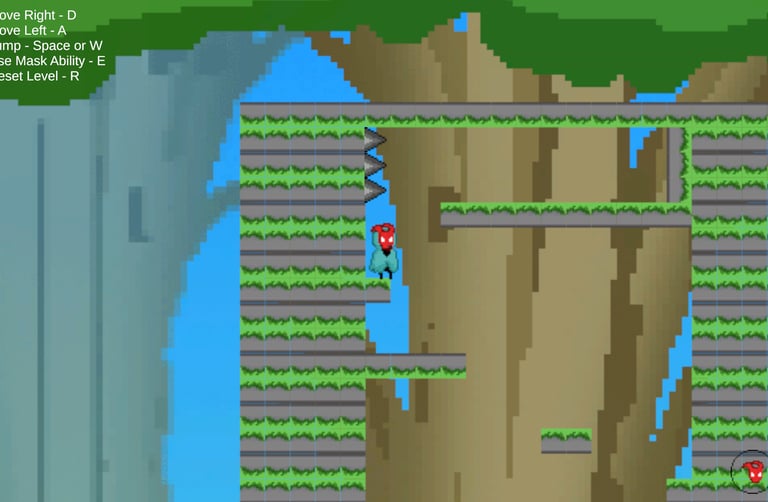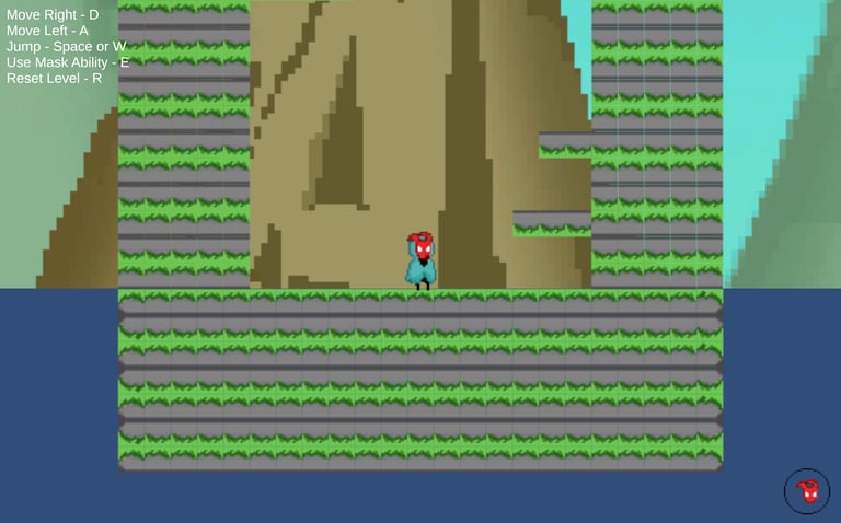 I was the sole programmer on this project for my team, so I needed to program the basic player movement, each of the masks and their abilities, the UI, the enviromental hazards (the spikes), the player restart, and the start menu. I also setup the version control, which included helping the other team members gain access to the project and helping them understand how the version control worked.