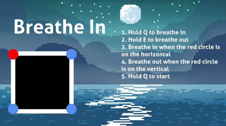 My main task on this game was to create the two breathing minigames, the square breathing and the resonance breathing minigames. I was also responsible for creating the player movement, certain event triggers, and an indicator that shows the player where the objective is located.